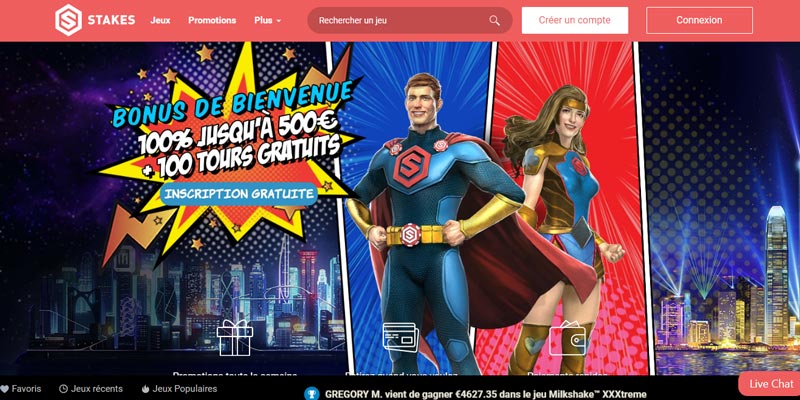 Stakes propose de généreux bonus de casino en ligne réparti entre bonus de bienvenue et les offres de bonus casinos réguliers. Le casino est parfait pour les joueurs qui cherchent des bonus de recharge (avec un wager dans la moyenne haute : x40) et un programme VIP avec retraits prioritaires.
