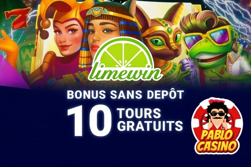 Limewin Casino réserve un bonus sans dépôt de 10 tours gratuits (0,20 €/tour) aux nouveaux joueurs s’inscrivant via notre lien partenaire exclusif.