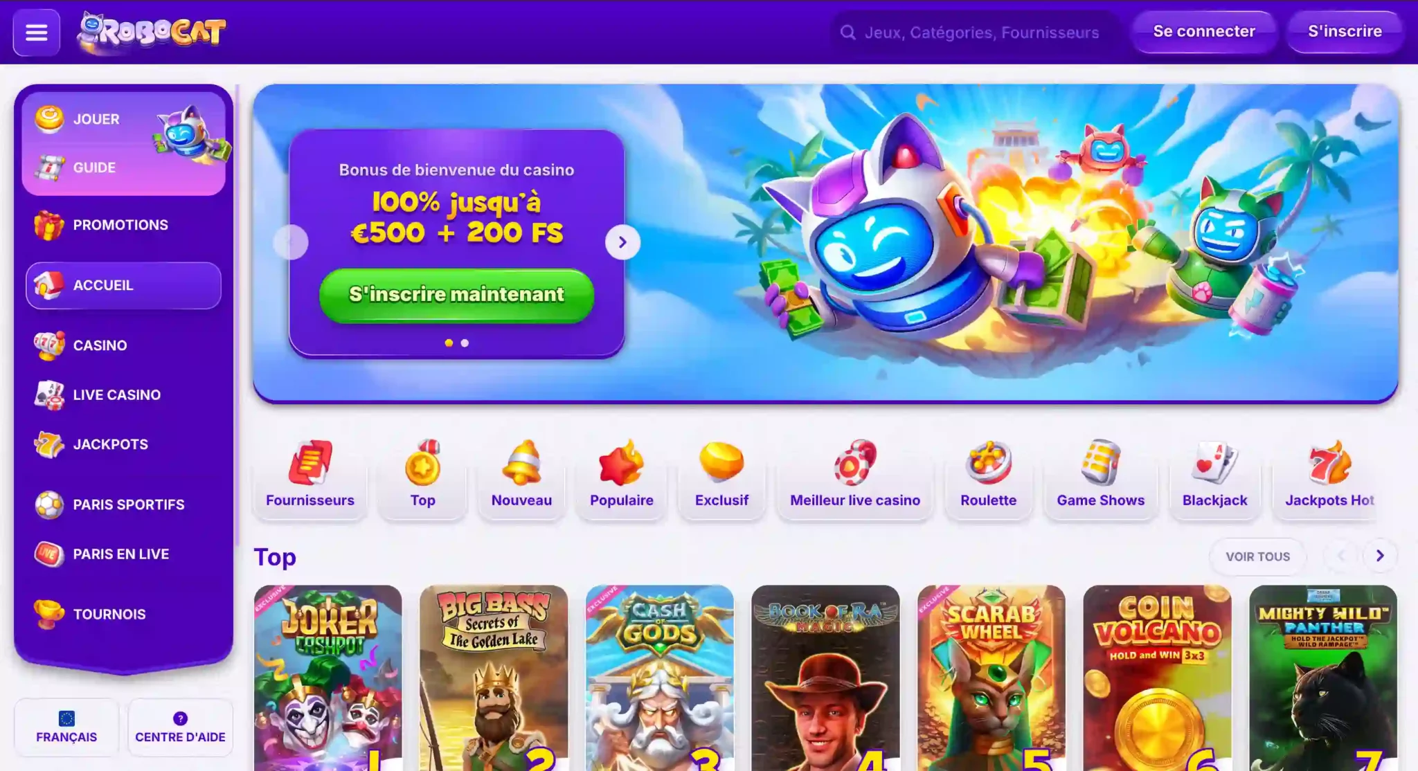 Pour les joueurs qui souhaitent en savoir plus sur cette plateforme, voici un résumé de ce que Robocat Casino offrait avant sa fermeture aux joueurs français.