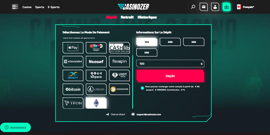 | 🤝 Service client | FR 🇫🇷 24/7 (chat, e-mail & téléphone) |