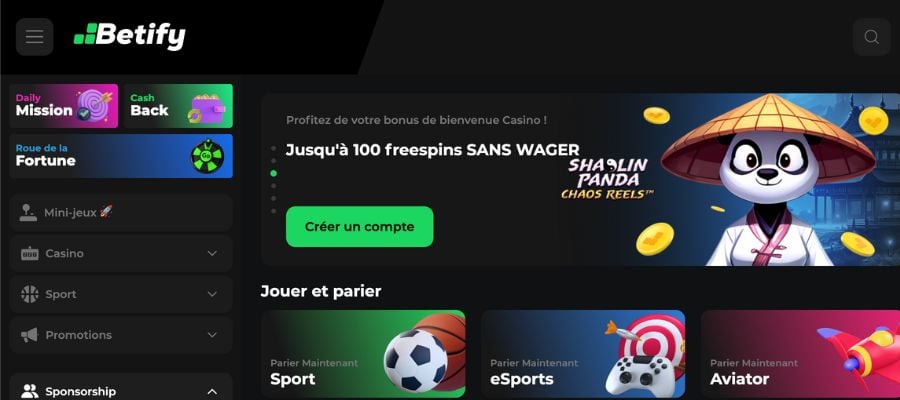Betify propose 100 free spins sans wager à l’inscription et un bonus exclusif jusqu’à 1 000 € + 30 FS (code PANDA30, wager x35 sur le bonus). Dépôt minimum 5 €. Plus de 3 000 jeux provenant de 90+ fournisseurs et un programme VIP 18 niveaux avec cashback jusqu’à 20 %. Retraits en <24h via crypto/e-wallets et 1–2 jours ouvrés par carte ou virement.